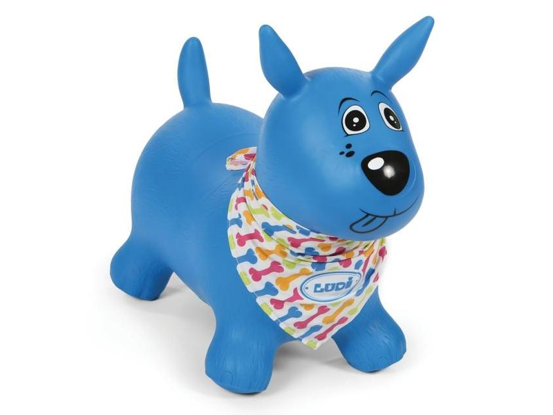 Nafukovací skákací pes pre deti ergonomického tvaru. Najmenším deťom pomôže pri ich prvých krôčikoch. Keď dieťa získa pri chôdzi istotu, začne objavovať kúzlo skákania. Uši slúži ako držadlá. Okolo krku môžete psíkovi uviazať šatku s popisovacou menovkou, aby si dieťa svojho psíka mohlo pomenovať. Vyrobený z odolného materiálu vhodného pre použitie doma aj vonku. Súčasťou výrobku je aj nafukovacia pumpička. Rozmery: 58 × 48 × 27 cm. Nosnosť 35 kg. Vhodné pre deti od 10 mesiacov..