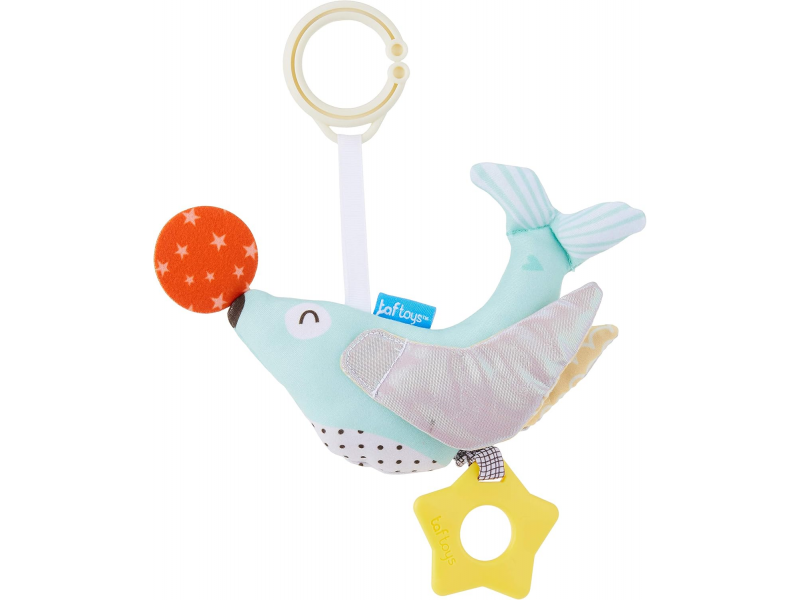 Závesná hračka v podobe roztomilého tuleňa pri pohybe hrkajúceho. Vďaka plastovému krúžku hračku ľahko pripevníte napr. na autosedačku či kočík.