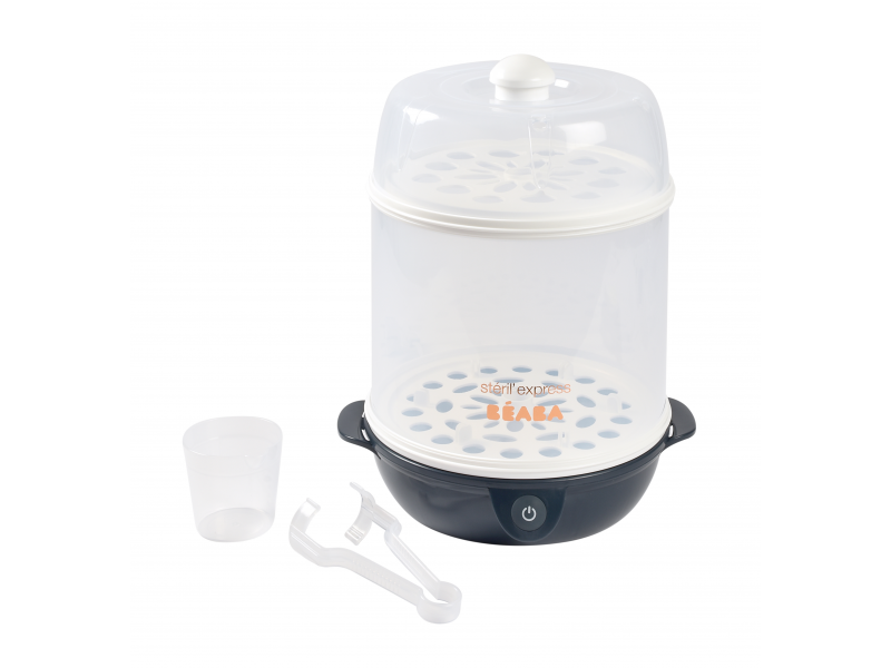 Elektrický parný sterilizátor Beaba Express je určený na rýchlu a pohodlnú sterilizáciu dojčenských fliaš a doplnkov. Sterilizácia trvá iba 6 minút a zničí 99,99% všetkých baktérií.