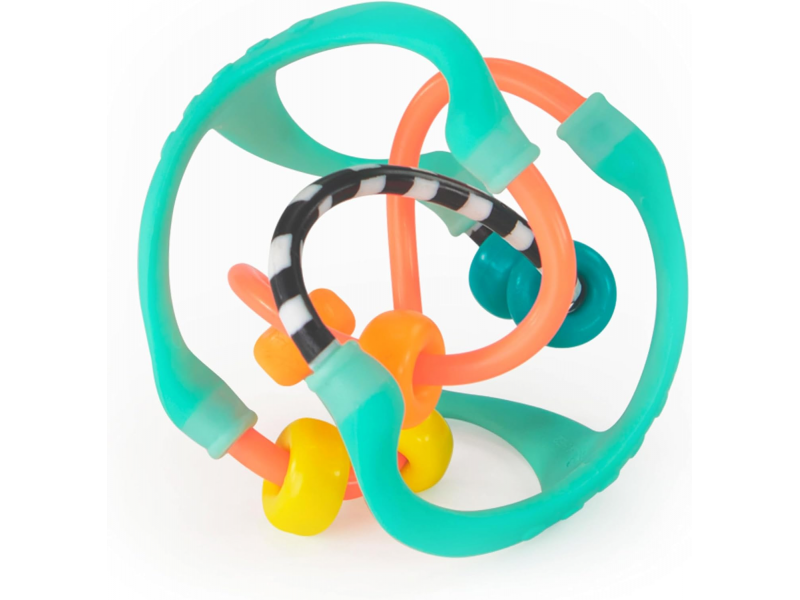 Hrkálka s pohyblivými korálkami sa skvele drží malými detskými ručičkami a láka ich na skúmanie v ústach. Výrazné kontrastné farby upútajú zrak dieťaťa.