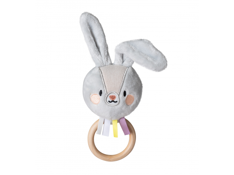 Hrkálku tvorí mäkká plyšová hračka v tvare rozkošného zajačika Ryleeho a drevený krúžok. Rôzne tvary a povrchy hračky podnecujú dieťa k skúmaniu rukami aj ústami a pomáhajú rozvíjať jemnú motoriku a zmysly dieťaťa.