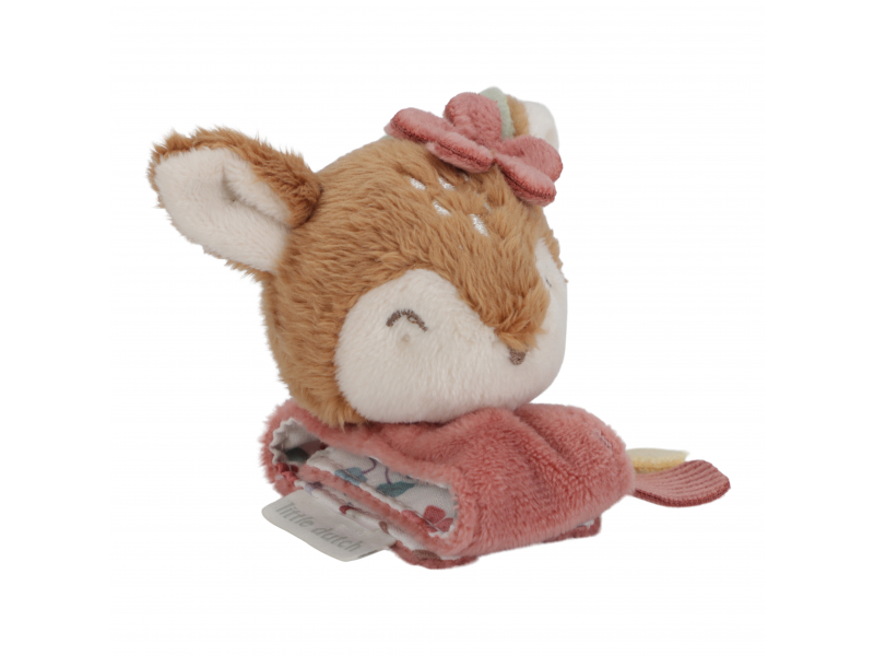 Mäkká hrkálka s rozkošnou srnkou ľahko pripevníte na ruku dieťaťa s pomocou úchytu na suchý zips. Hračka z jemného plyšového materiálu hrká, šuštia a láka dieťa na skúmanie.