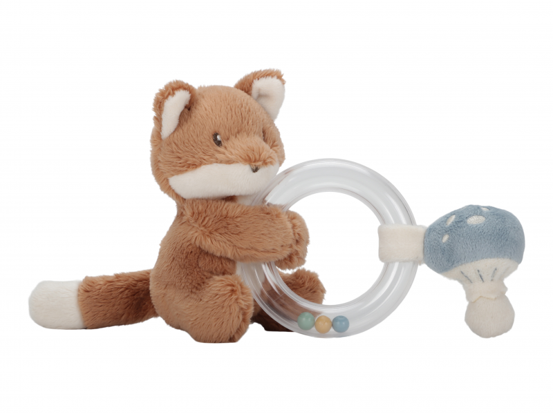 Originálna hrkálka v podobe priehľadného krúžku s hrkajúcimi korálkami a plyšovou líškou a hubkou je ideálna ako prvá hračka pre vaše bábätko. Hrkálka má tvar pre ľahké uchopenie a rôznorodé textúry na skúmanie rukami aj ústami.