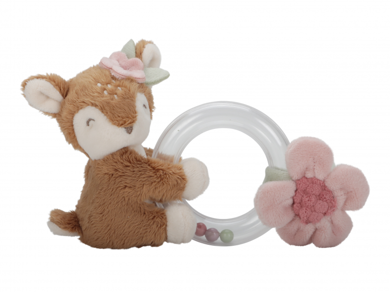 Originálna hrkálka v podobe priehľadného krúžku s hrkajúcimi korálkami a plyšovou srnkou a kvietkom je ideálna ako prvá hračka pre vaše bábätko. Hrkálka má tvar pre ľahké uchopenie a rôznorodé textúry na skúmanie rukami aj ústami.
