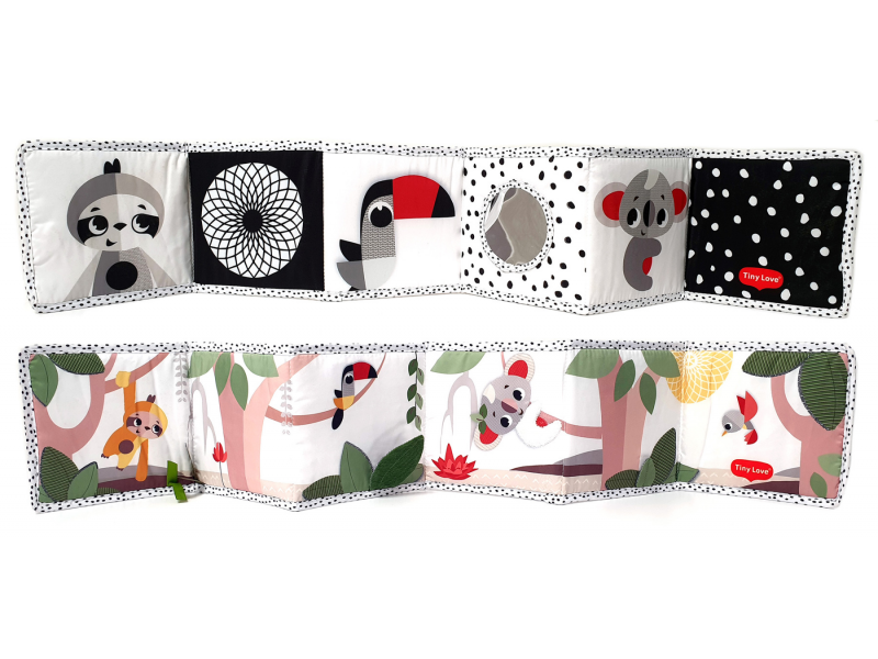 Obojstranná textilná knižka pre najmenších Tiny Love je určená do kočíka, postieľky aj na hraciu deku.