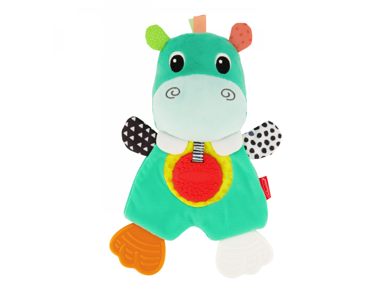 Maznacia hračka s hryzátkami je vhodná ako prvá hračka dieťaťa. Rôznorodé textúry i šuštiace časti lákajú dieťa na skúmanie rukami aj ústami. Hryzátka dieťaťu uľavia pri prerezávaní prvých zúbkov.