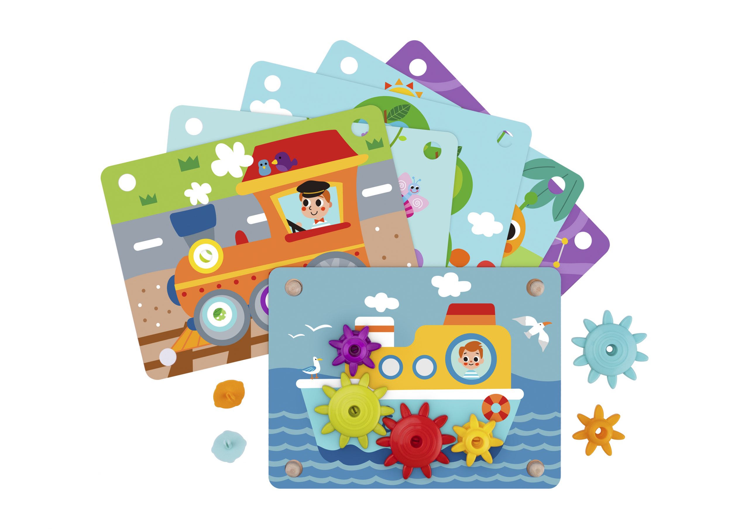Ozubené kolieska pre najmenších Skladačka pre malých inžinierov! Ozubené kolieska pre deti od Tooky Toy sa stanú obľúbenou hračkou aj tých najmenších detičiek. Na veľkú drevenú dosku pripevníte jeden zo 6 obrázkov a detičky potom už samy do dierok v obrázkoch vkladajú 6 rôzne veľkých a farebných ozubených koliesok. Pokiaľ sa ich deťom podarí zložiť správne, kolieska do seba krásne zapadnú, stačí otočiť jedným a budú sa točiť všetky. Pokiaľ sa to nepodarí, nevadí, koliesko je vždy možné presunúť a skúsiť znova.Ozubené kolieska vzbudzujú záujem o mechaniku Hra s ozubenými kolieskami podporuje predstavivosť a poskytuje možnosť experimentovať s jednoduchou mechanikou. V deťoch prebúdza aj záujem o vedu, techniku či fyziku. Hra zlepšuje jemnú motoriku a logické myslenie. Hračky pre deti od Tooky Toy sú bezpečné, dobre opracované a natreté netoxickými farbami. Hra je vhodná už pre deti od 18 mesiacov.